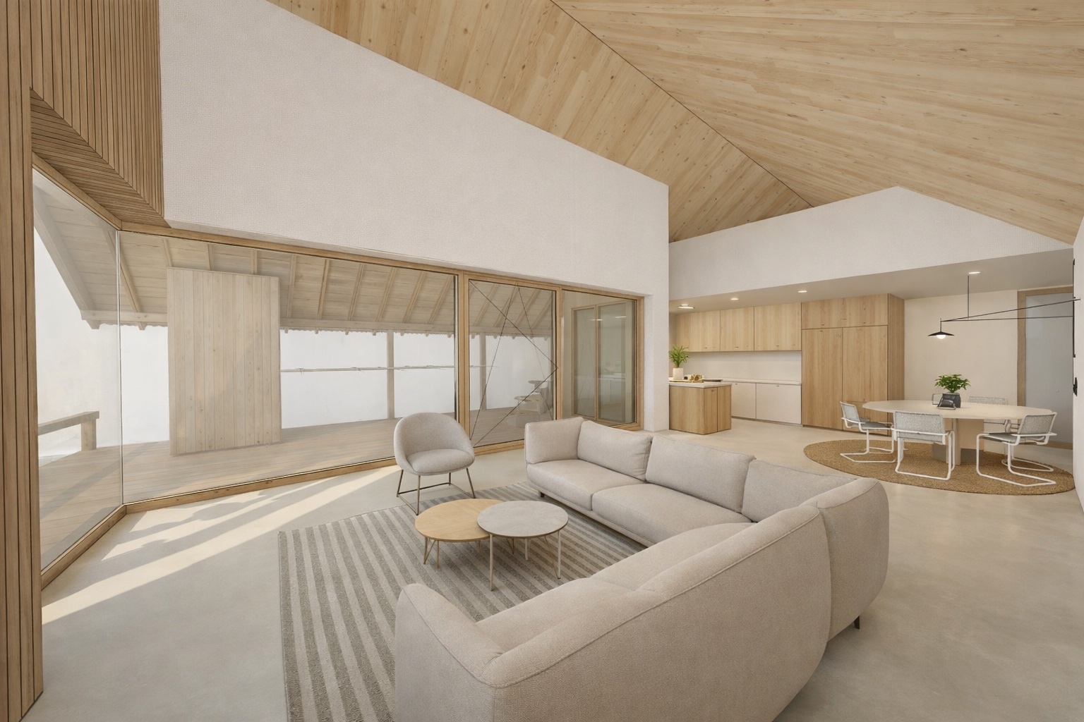 De privébuitenruimtes zijn compact en beperkt tot een eigen terras met optimale zonoriëntatie. Vanuit hier loopt het wonen vloeiend over in het omliggende landschap, waarbij het groen als vanzelf onderdeel wordt van de woonbeleving.