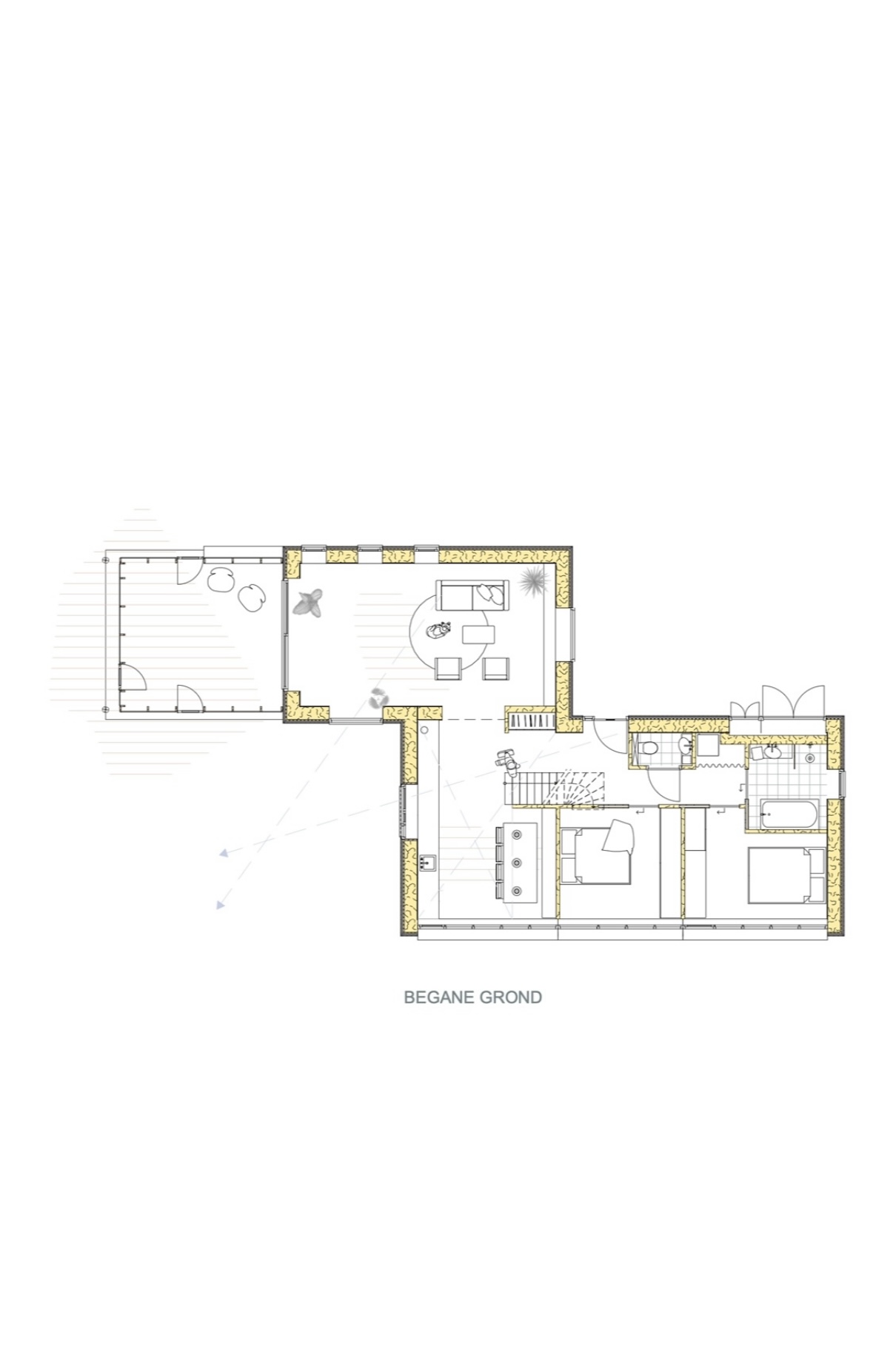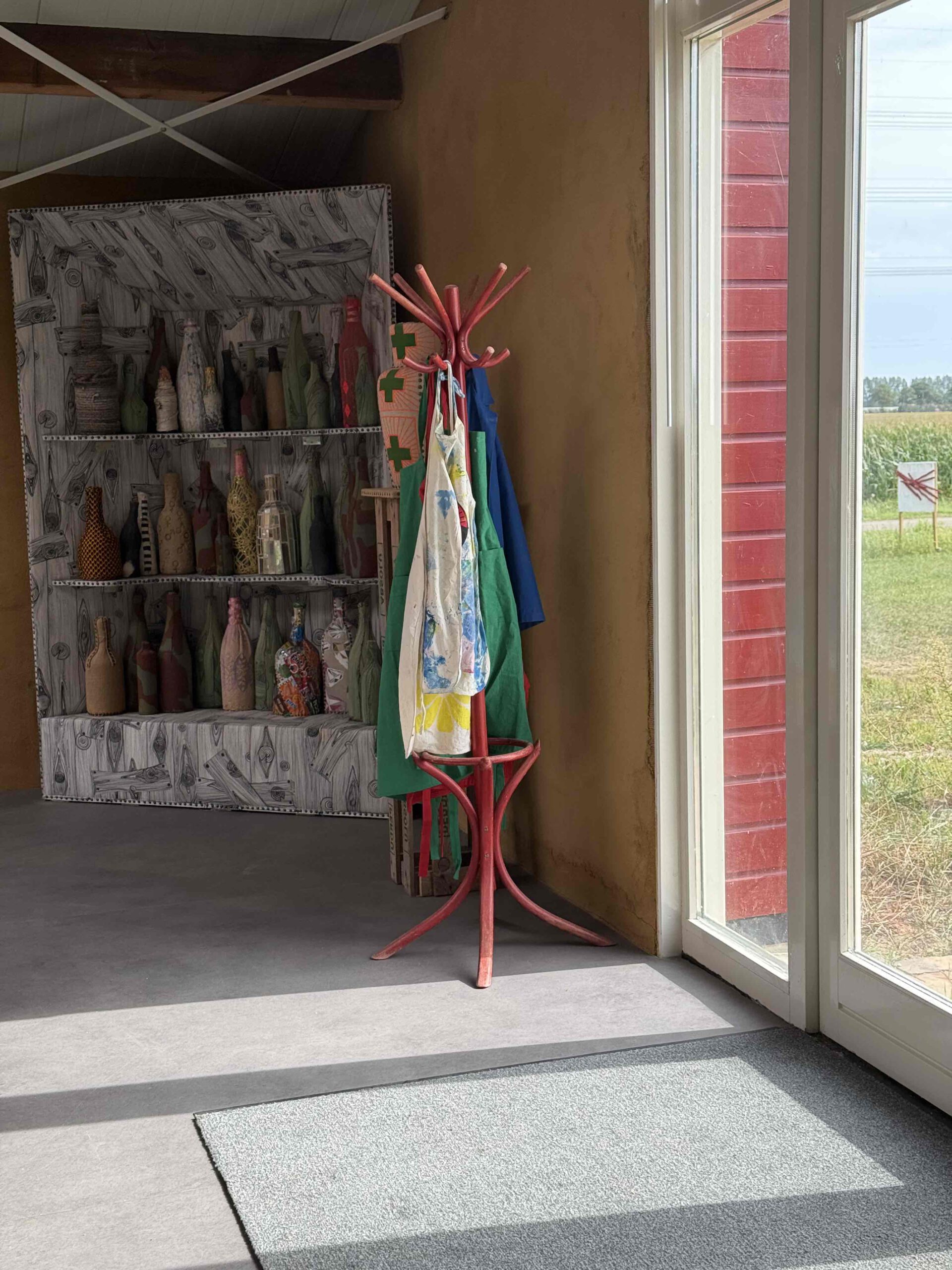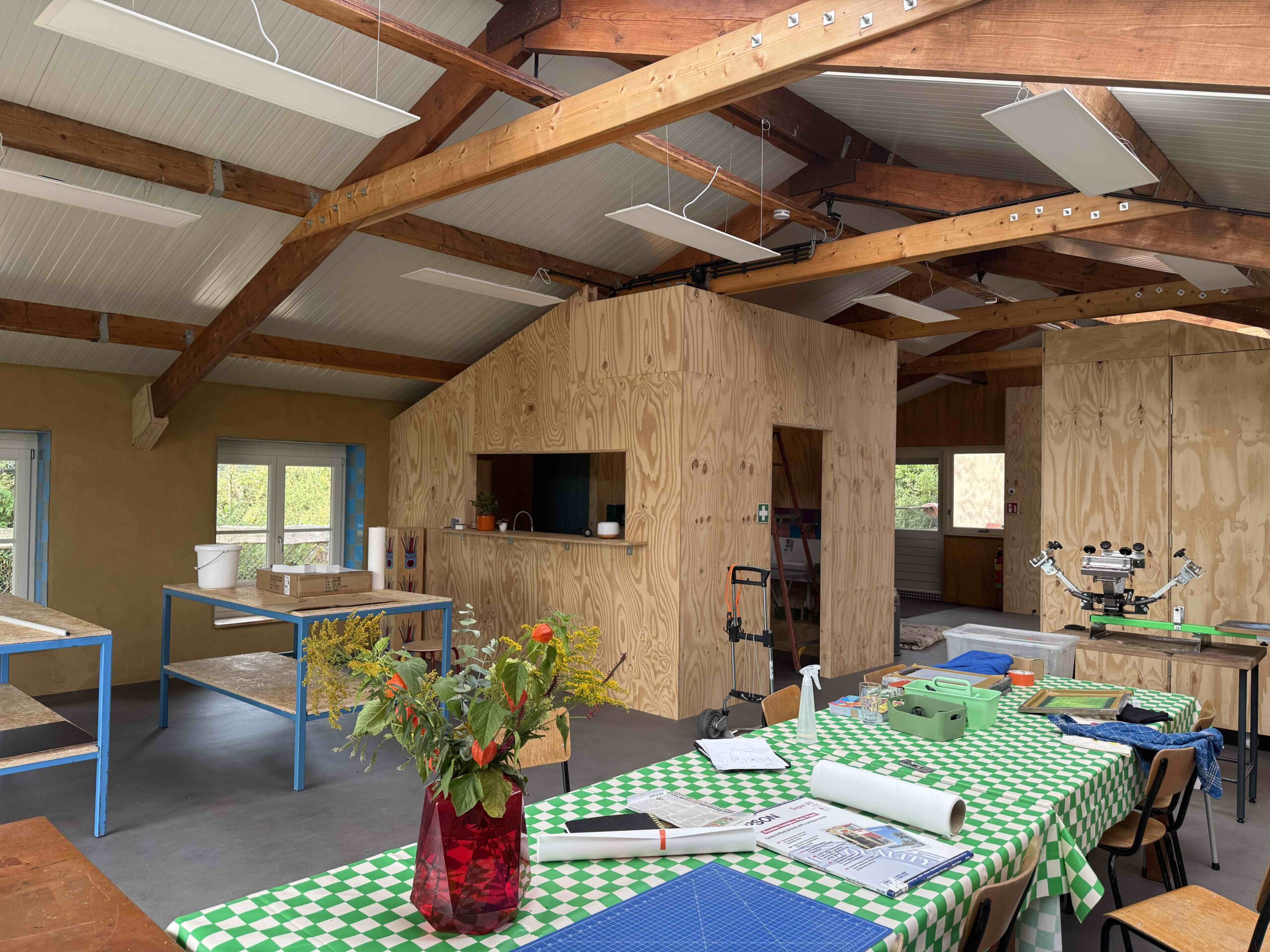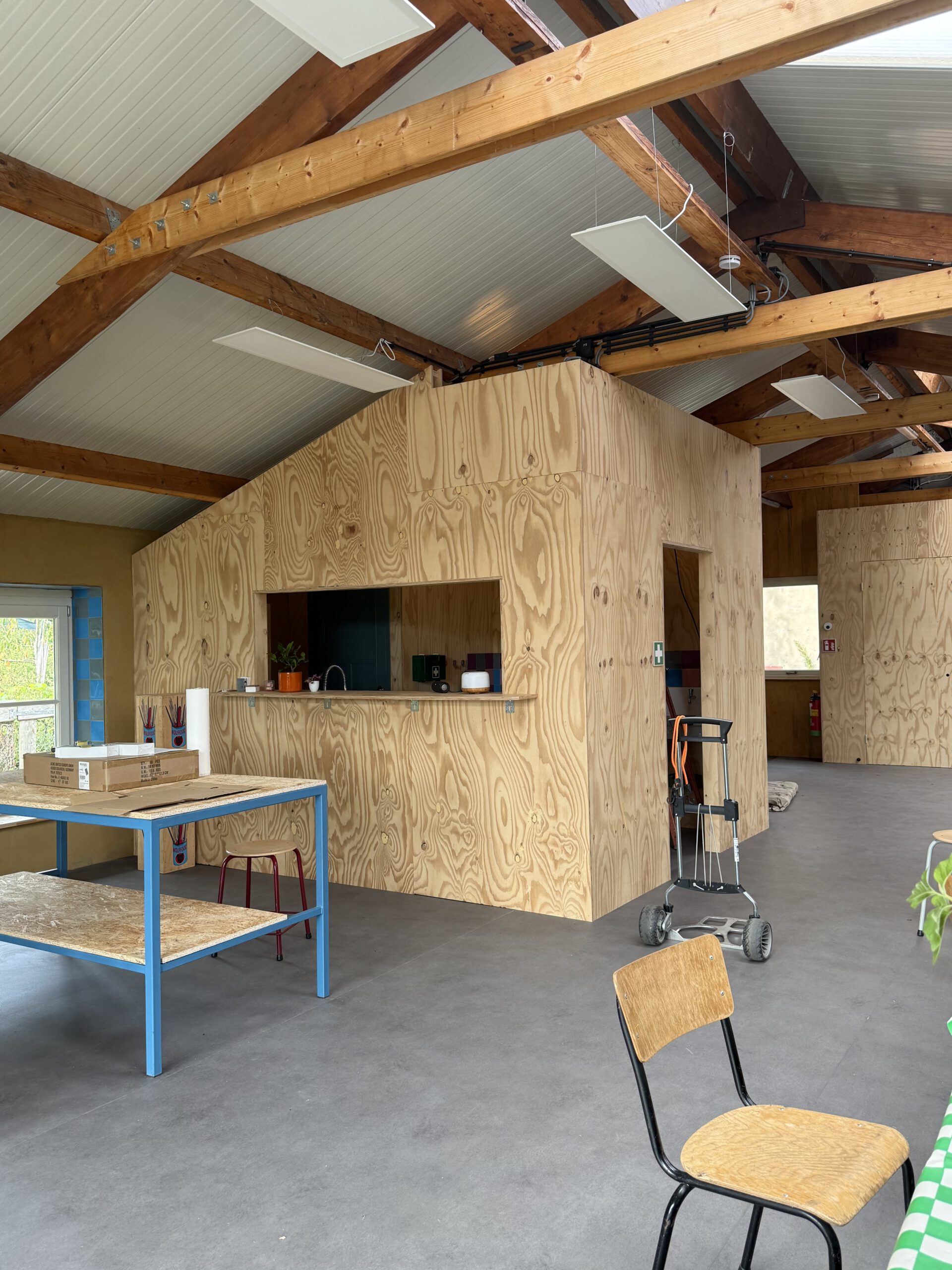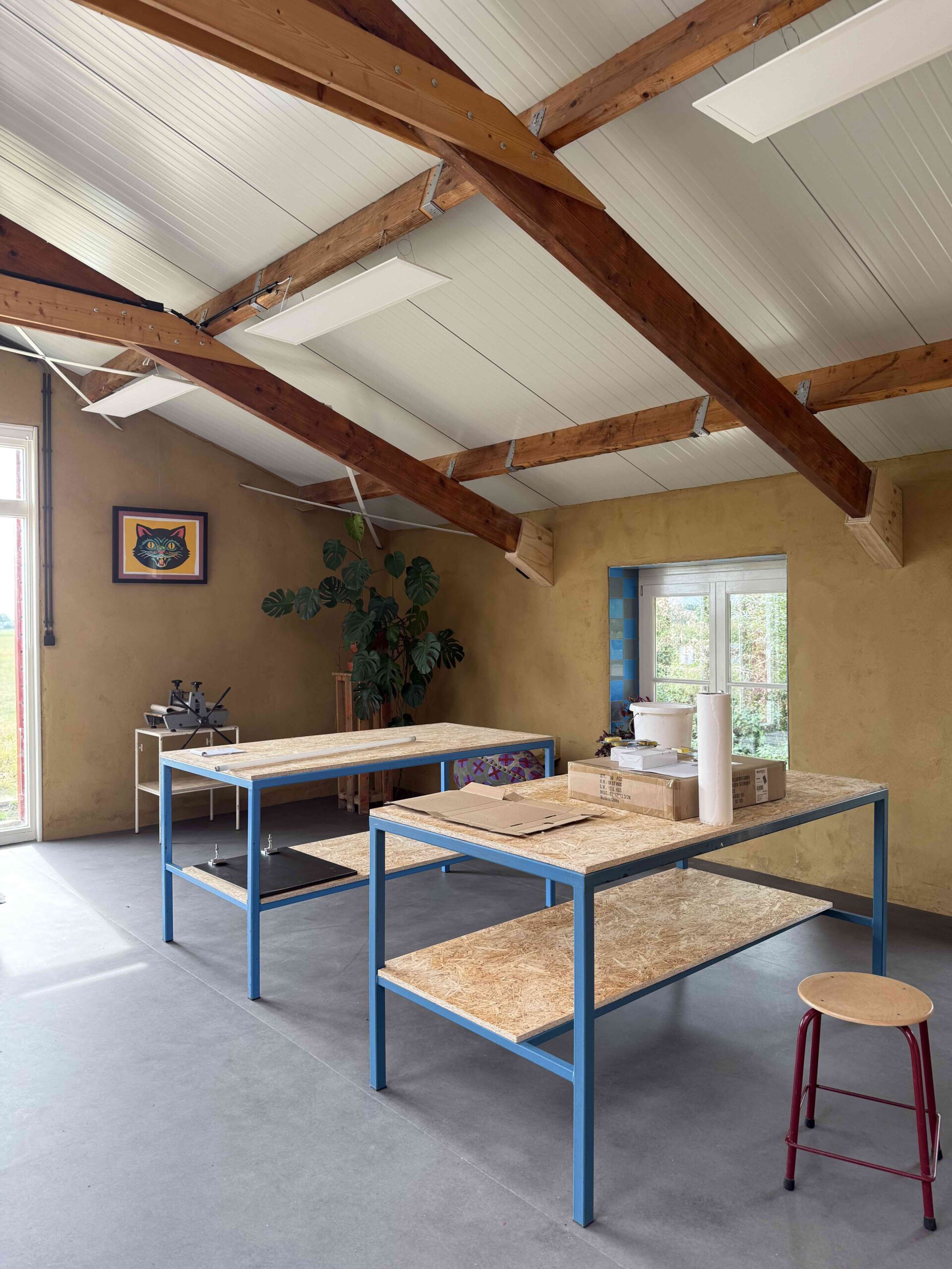 Naast het woonhuis is een lichte studio/atelier toegevoegd. In deze ruimte zorgen verplaatsbare boxen voor maximale flexibiliteit: de indeling kan eenvoudig worden aangepast voor werk, logies, creatieve sessies of kleine bijeenkomsten. Dit maakt het erf niet alleen dynamisch, maar ook toekomstgericht en gedeeld inzetbaar.